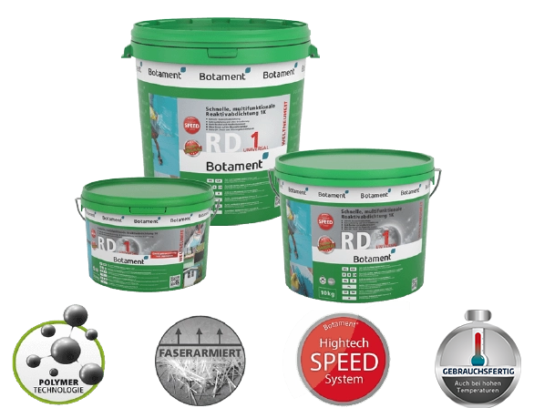 / stukRD1 Universal is een ééncomponent, snel uithardende reactieve afdichtingskit voor het waterdicht maken van bouwdelen in contact met de grond in nieuwe gebouwen en voor het renoveren van oude afdichtingen. RD1 Universal heeft de Europese Technische Beoordeling (ETA-18/0327) als Flexibele Polymeer Gewijzigde Dikke (FPD) coating.
