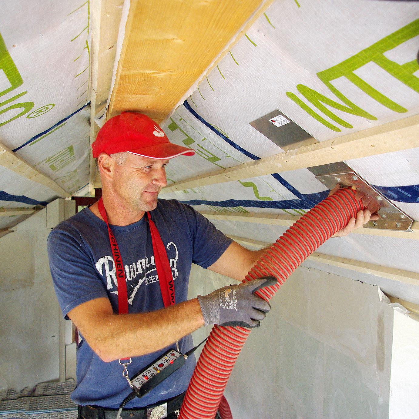 Kierloze vulling: door inblaastechniek vult het materiaal ook hoeken, naden en open ruimtes volledig zonder koudebruggen.