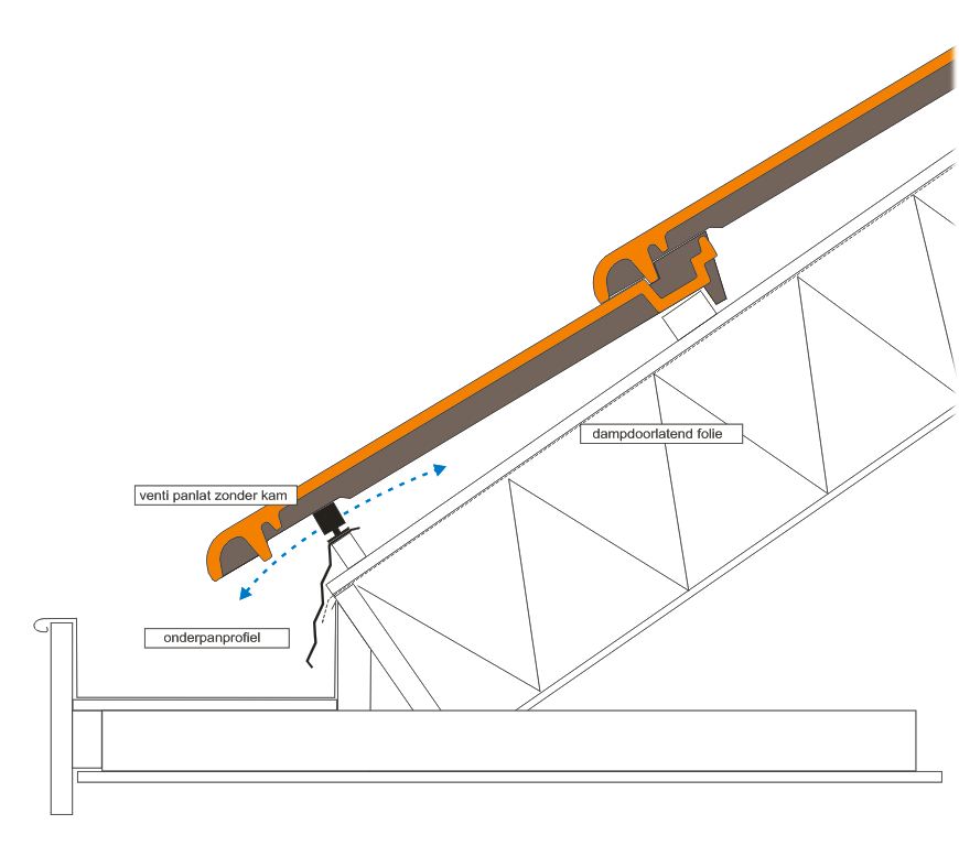 Het onderpanprofiel kan alleen, of eventueel in combinatie met vogelschroot of ventipanlatten worden toegepast. Het onderpanprofiel beschermt het dakbeschot of dakplaat tegen opspattend water uit de dakgoot. Door toepassing van het onderpanprofiel wordt een mooie strakke aansluiting tussen dakpannen en dakgoot verkregen en wordt de ‘inkijk’ onder de pannen voorkomen.