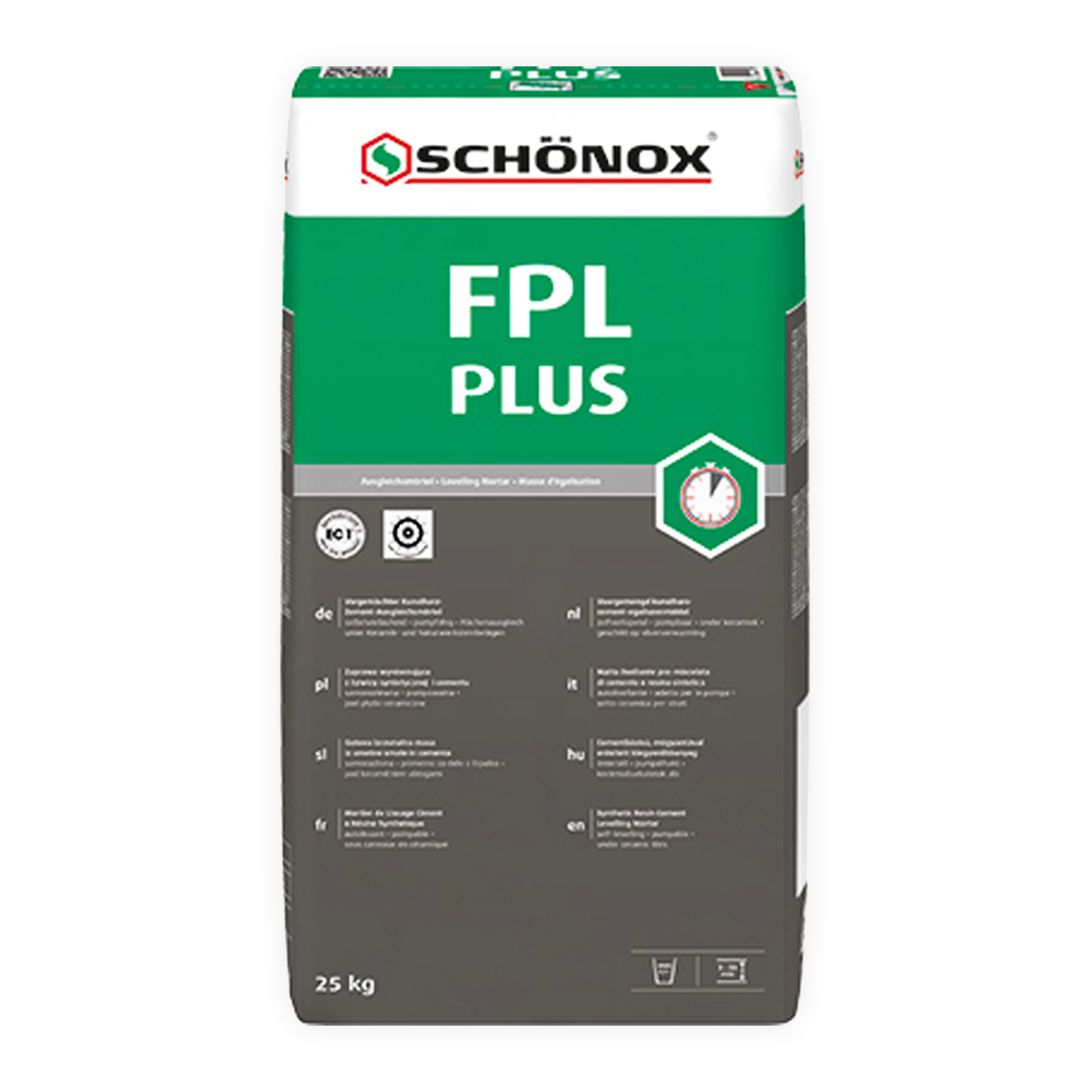 Schönox FPL Plus is een nivellerende kunsthars-cement egaliseermortel, die tevens geschikt is voor het maken van cementdekvloeren onder keramische bekledingen. Deze egaliseermortel is goed te gebruiken bij keramische- en natuursteenbekledingen.